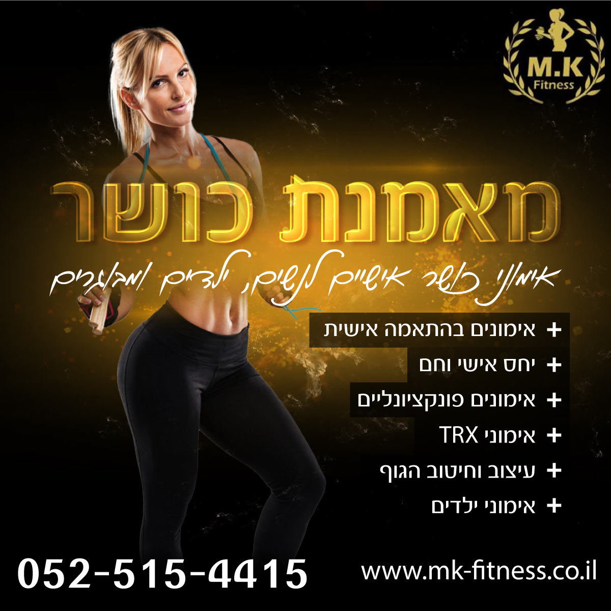MK FITNESS – סטודיו לאימוני כושר בהנהלת מאמנת מקצועית, הממוקד ביצירת קהילת מתאמנים פעילה ותוססת.